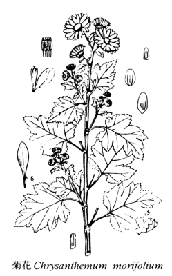 | 身近にある薬用植物 秋を代表する観賞用に栽培されている方も多いキク Chrysanthemum morifolium、キク科Compositae も漢方薬です。 花(頭状花)を利用します。二千年前に書かれた神農本草経(しんのうほんぞうきょう)に不老長寿に飲む薬(上品、朝鮮人参もここにあります)に分類されています。後世の本草書に「薬用の菊は、花は一重で小さく黄色で、葉は縁が深く小さく薄く、9月に花の開くものが正品である」と書かれています。キクは種類が多いのですが明代の本草書には「食用にするは甘いもので、薬用には甘くても苦くてもいずれでも良い」とあります。現在、薬局で売られているものは花が咲いたものと蕾とがありますが、どちらを用いてもかまいません。キクは精油やフラボノイドが多く含まれる植物です。花を乾燥させて頭痛、めまい、眼疾患に用います。中国ではお茶として親しまれています。1日10〜15cを土瓶で水400`で煎じ3回に分けて飲みます。風邪の予防や、腫れ物、ルイレキ、呼吸器の炎症、高血圧、二日酔いなどにも利用されます。有名な処方に釣藤散というのがありますが、これにも菊花が含まれています。中高年以後の方で動脈硬化が原因で起こる頭痛、肩こり、めまい、耳鳴り、高血圧などに用いられています。視力減退・かすみ目の方には杞菊地黄丸というのもあります。 ●情報提供 長岡孝実「漢方薬局一貫堂、行橋市中央3-2-27」g26−2620、 http://ikkando.com |